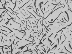 2、金相要求:制动面要求片状A型石墨≥90%,石墨长度4~5级,B、D、E型石墨小化,不允许存在C型石墨,基体组织:允许存在5%以下的铁素体,其余为珠光体,碳化物含量不允许超过2%。